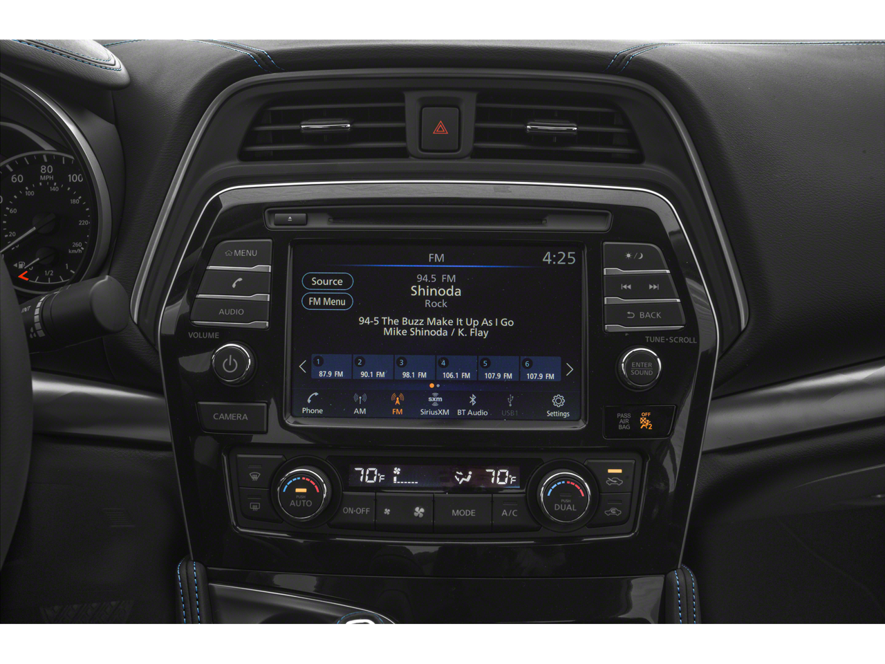- Radio: AM/FM/CD Audio System w/Navigation -inc: 11 speaker Bose sound system, rear USB ports (charge only, 1 Type-A, 1 Type-C), Nissan door to door navigation w/3D building graphics and satellite imagery, HD radio, SiriusXM Travel Link (weather, fuel prices, movie listings, stock info, sports and parking), SiriusXM Traffic, MP3/WMA reader, NissanConnect featuring Apple CarPlay and Android Auto, 8" color display w/multi-touch control, 2 front illuminated USB connection ports (1 Type-A, 1 Type-C) for iPod interface and other compatible devices, Bluetooth® hands-free phone system, streaming audio via Bluetooth®, hands-free text messaging assistant, swipe to meter functionality, SiriusXM satellite radio w/advanced audio features and auxiliary audio input jack
