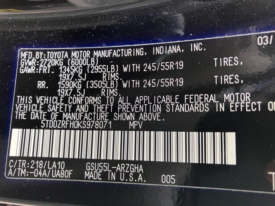 - Front Tire Size: P245/55SR19