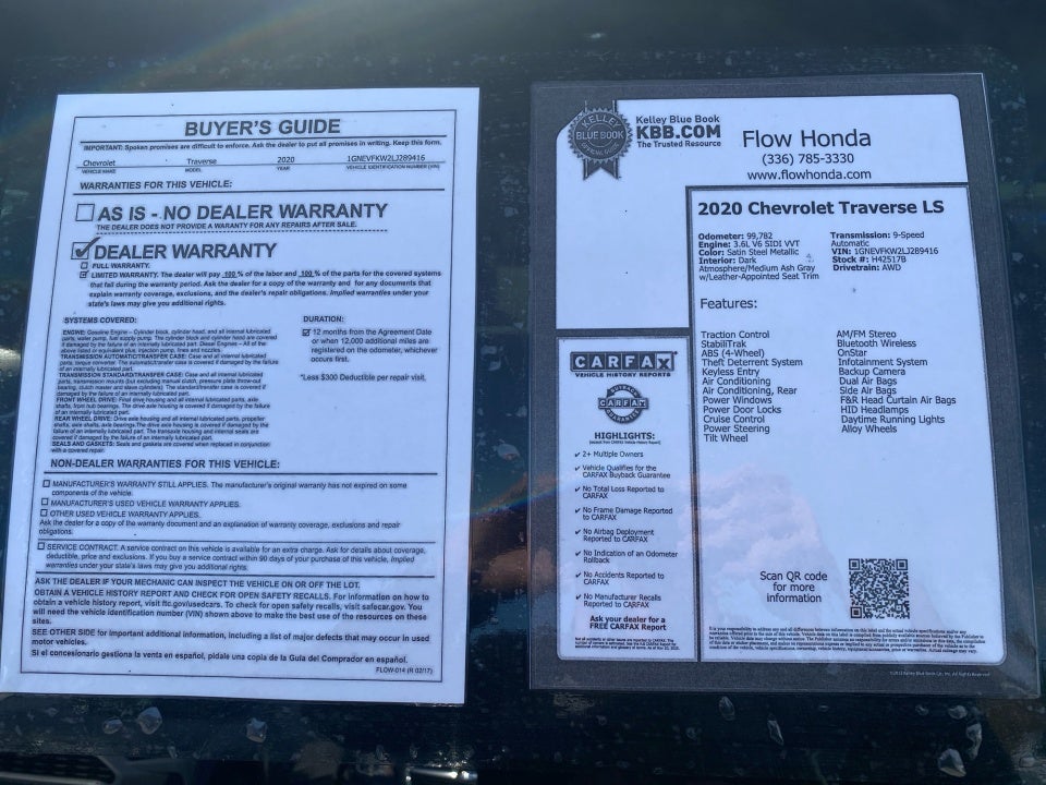 FLOW CERTIFIED! 12 MONTHS/12000 MILE WARRANTY and a free maintenance package on this 2020 Chevrolet Traverse Satin Steel Metallic LS! **