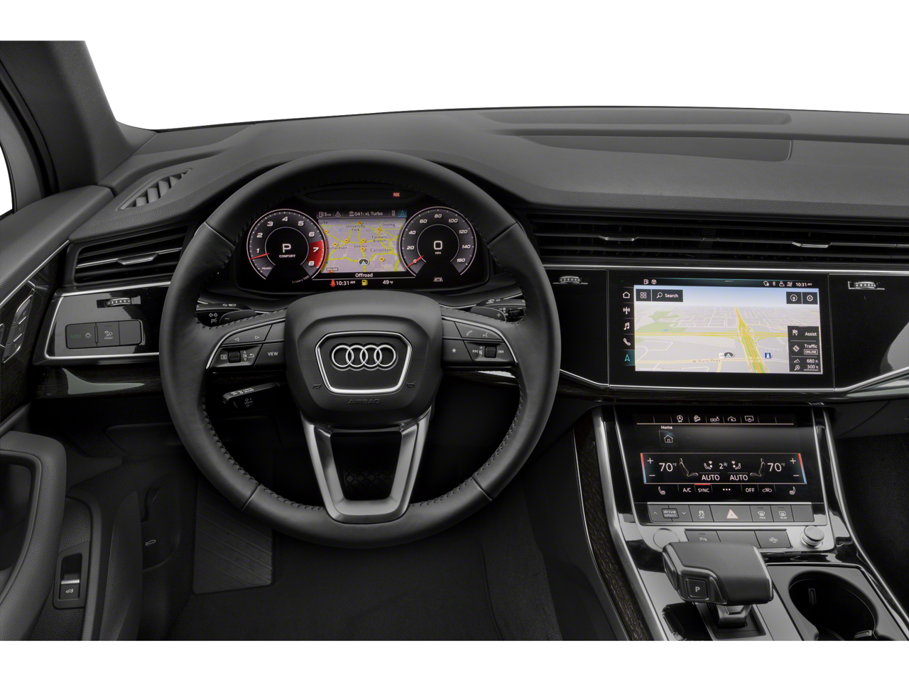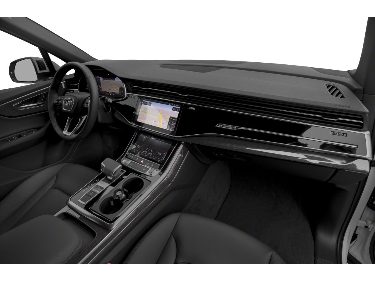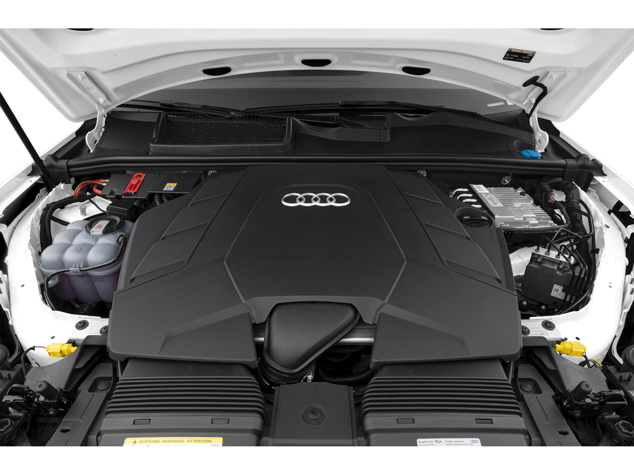 10 Speakers 3.204 Axle Ratio 3rd row seats: bench 4-Wheel Disc Brakes ABS brakes Air Conditioning Alloy wheels AM/FM radio: SiriusXM Audi smartphone interface (Apple CarPlay/Android Auto) Auto High-beam Headlights Auto-dimming door mirrors Auto-dimming Rear-View mirror Automatic temperature control Brake assist Bumpers: body-color Compass Delay-off headlights Driver door bin Driver vanity mirror Dual front impact airbags Dual front side impact airbags Electronic Stability Control Emergency communication system: Audi connect CARE PRIME & PLUS Exterior Parking Camera Rear Four wheel independent suspension Front anti-roll bar Front Bucket Seats Front Center Armrest Front dual zone A/C Front fog lights Front reading lights Fully automatic headlights Garage door transmitter: HomeLink Genuine wood door panel insert Heated door mirrors Heated Front Bucket Seats Heated front seats Illuminated entry Leather Seating Surfaces Leather Shift Knob Leather steering wheel Low tire pressure warning Memory seat Navigation system: Audi MMI Navigation plus with Touch Response Occupant sensing airbag Outside temperature display Overhead airbag Overhead console Panic alarm Passenger door bin Passenger vanity mirror Power door mirrors Power driver seat Power Liftgate Power moonroof: Panoramic Power passenger seat Power steering Power windows Radio data system Radio: Audi Sound System Rain sensing wipers Rear air conditioning Rear anti-roll bar Rear fog lights Rear reading lights Rear seat center armrest Rear side impact airbag Rear window defroster Rear window wiper Reclining 3rd row seat Remote keyless entry Roof rack: rails only Security system Speed control Speed-sensing steering Split folding rear seat Spoiler Steering wheel memory Steering wheel mounted audio controls Tachometer Telesc