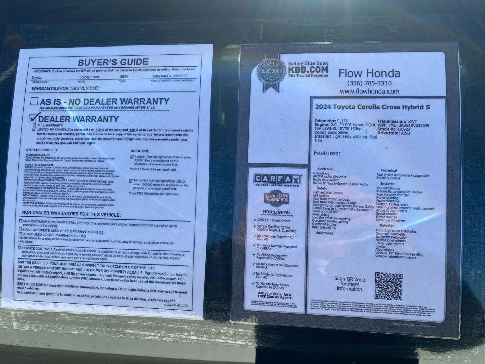 FLOW CERTIFIED! 4YR/100 000 MILE WARRANTY with $300 deductible and a free maintenance package on this 2024 Toyota Corolla Cross Sonic Silver Hybrid S! **