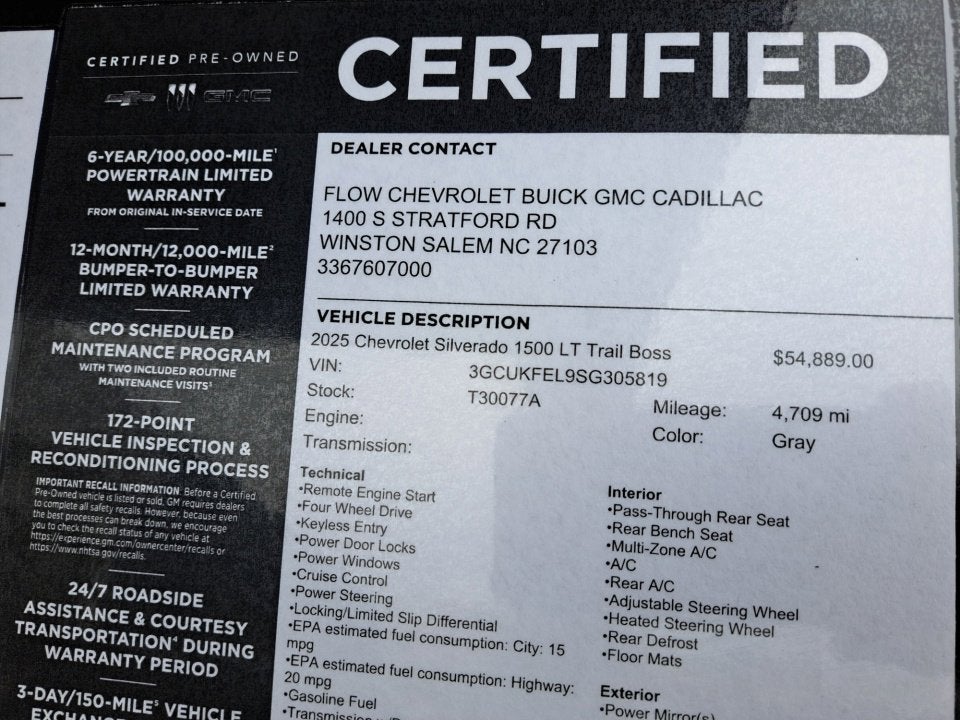 All of our Pre-Owned vehicles go through a QRP(Quality Renewal Process). Our customers tell us that we have the most professional, trustworthy & courteous staff they've ever experienced at a car dealership. Please come check out Flow GM Auto Center's Easy, Transparent, Fun, No Haggle, No Pressure shopping experience. Don't hesitate to contact us at www.flowgmauto.com or simply by calling 336-937-9049 to set up your VIP test drive. Thank you for allowing us to serve your automotive needs over the past 50+ years.