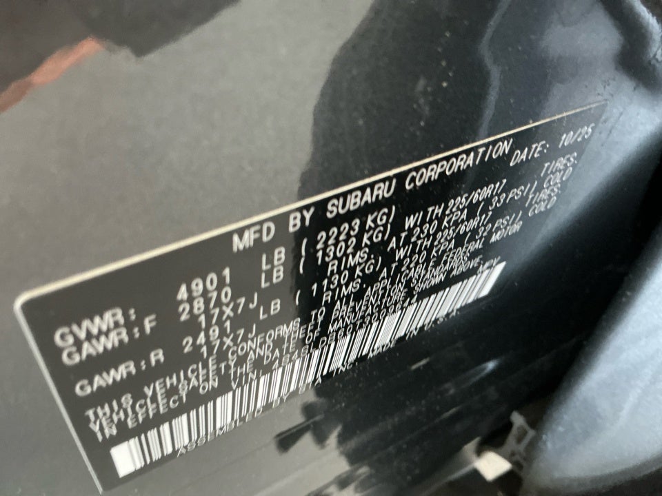 - Wheels: 17" x 7.0 J Dark Metallic Aluminum-Alloy -inc: machine finish and black wheel center cap w/Subaru 6 star logo